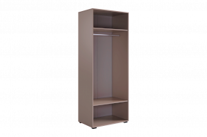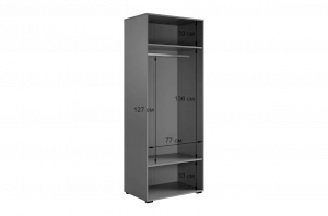 Шкаф оснащён длинными пластиковыми ручками и имеет удобное внутреннее наполнение: две большие полки и одна длинная штанга. Это позволяет рационально использовать пространство и разместить различные типы одежды.