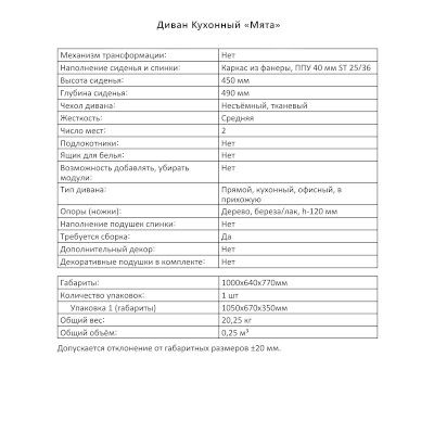 Кухонный диван Мята (Аквилон) продается в интернет-магазине newmebelin.ru по цене 12 488 руб. Есть доставка по Нижнему Новгороду и Нижегородской области. Возможность подъема на этаж и сборки уточняйте у менеджера по телефону 8(800)505-27-11.